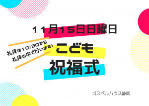2020/11/15日曜日、礼拝の中でこども祝福式を行います。教会の子供達の健やかな成長と祝福をお祈りします。
