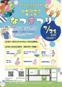 その中にぜひとも、「ひかりのこキッズなつまつり」をぜひ入れてください!