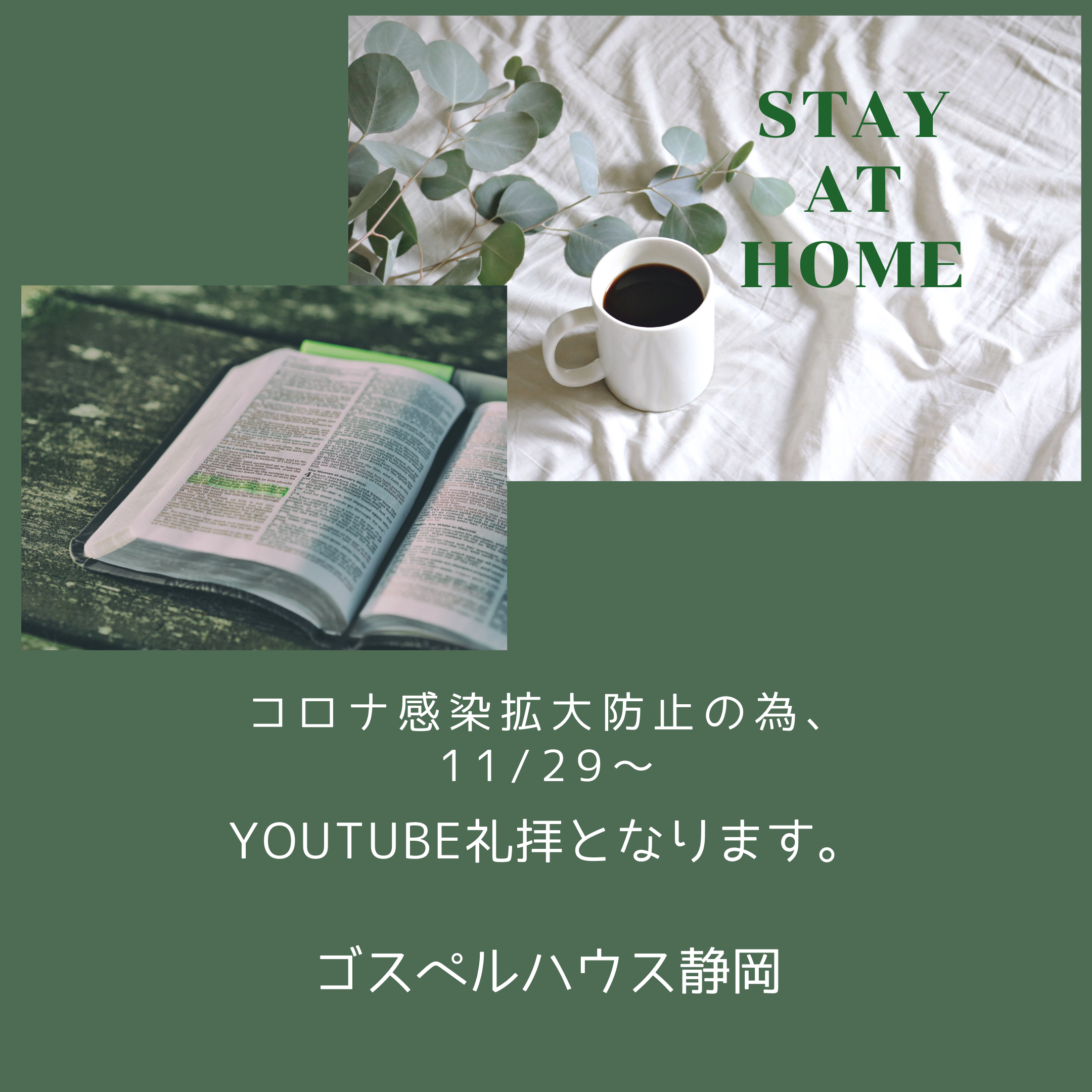 2020/11/29より、教会での日曜礼拝はしばらくお休みとなります。 You Tubeに礼拝メッセージをアップする予定です。時間未定。 12月の各イベントも変更がありますので、後日お知らせします。 よろしくお願いします。